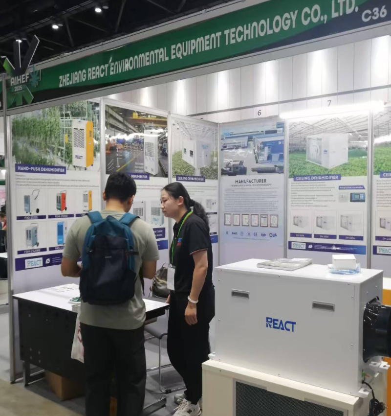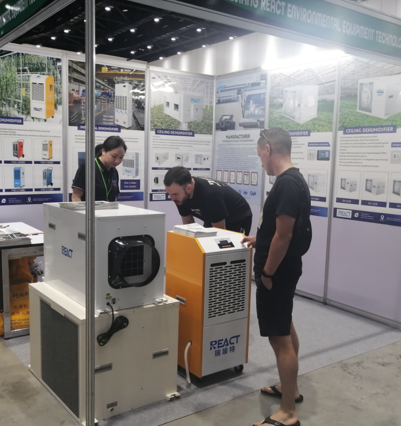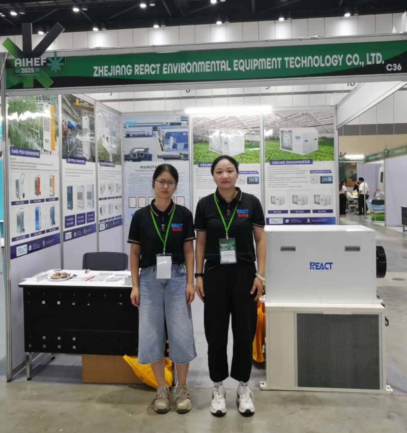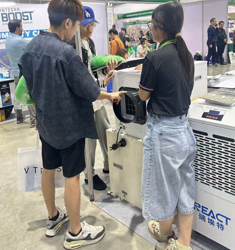 Our professional dehumidification solution became the focus of the exhibition. Among them, the precise moisture control cannabis greenhouse specific dehumidifier and the flexible and efficient portable industrial dehumidifier have received particularly high inquiries. They rely on REACT's technological accumulation in the field of industrial environmental control to provide stable and reliable humidity protection for specific agricultural production and industrial operations, attracting a large number of professional buyers to stop and consult in depth.
