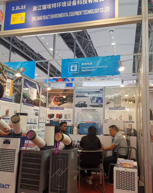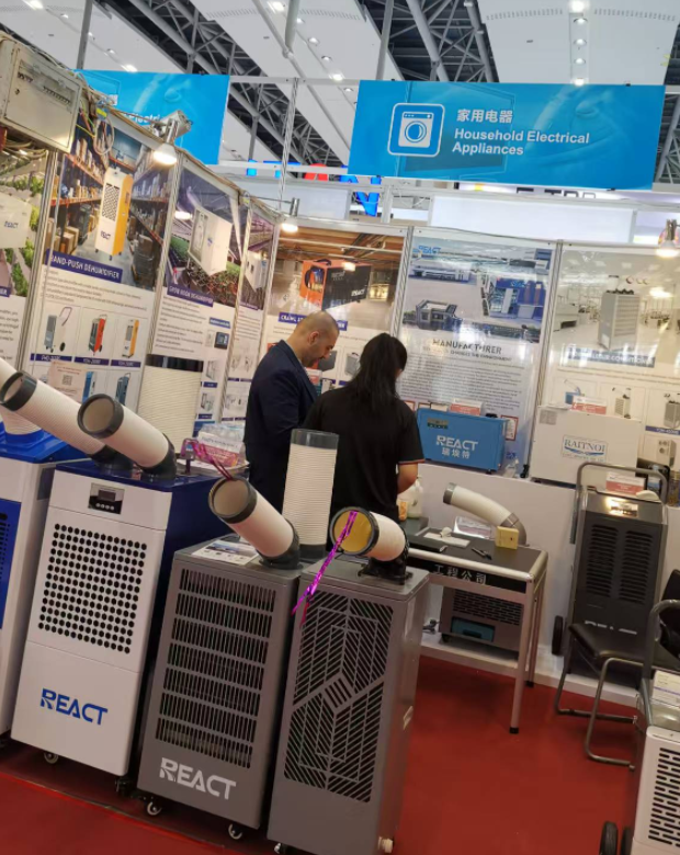 Based on 26 years of manufacturing strength, the portable air conditioners and industrial dehumidifiers showcased by REACT became the focus of the entire event. Among them, high-performance portable air conditioners are highly favored by customers in both commercial and household fields for their flexible applicability and excellent cooling effect; The greenhouse dehumidifier designed specifically for agricultural and industrial environments has also become a "dark horse" at this exhibition due to its ability to effectively solve the problem of moisture and mold, with a continuous surge in inquiries.