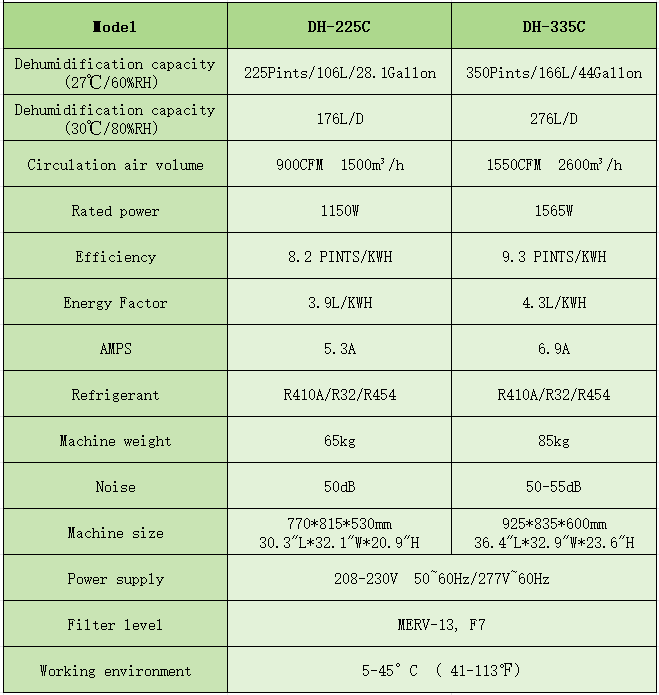 DH-335A adopts efficient natural drainage technology, which can quickly reduce the humidity in the greenhouse to the ideal level. Here are the key features of this dehumidifier:
